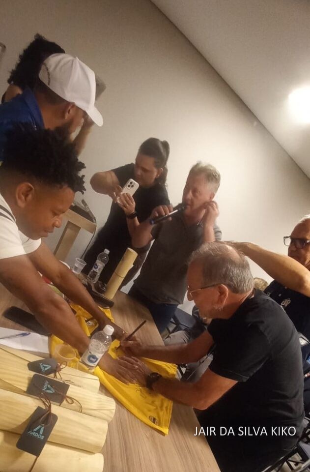 Pego de surpresa, na noite de ontem na coletiva de imprensa da Pantera Azul Dourada, fui homenageado junto com ex-atletas da época da fundação do esquadrão iguaçuano na década de 1970. Além de autografar uma camisa que será exposta em um quadro, também fui presenteado com a camisa retrô, a número 1. Foi um contentamento sem igual. Gratidão.